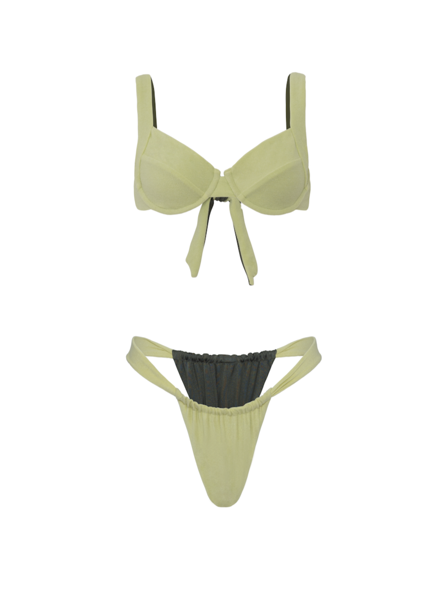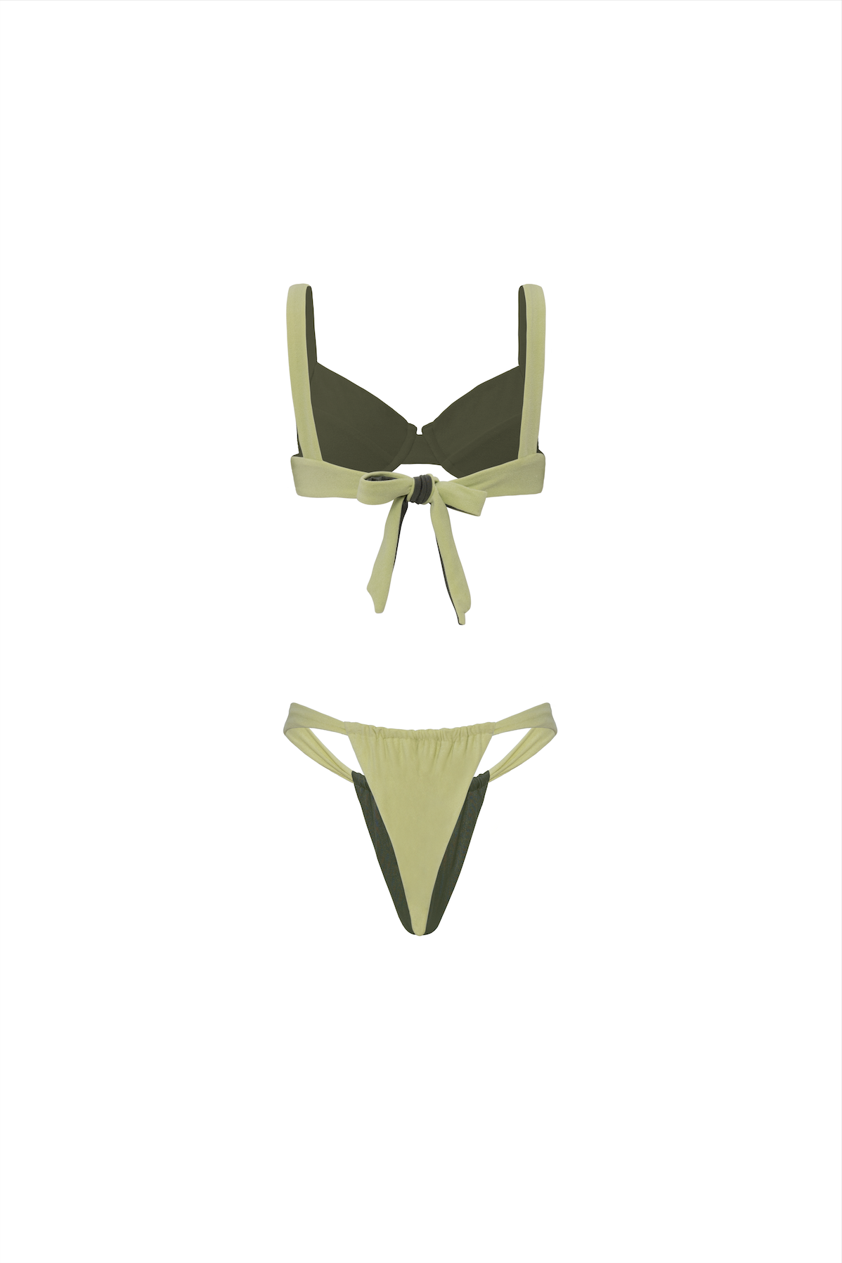 This underwire style bikini top is made with a luxurious velvet material and is reverisble with a olive green colour on the inside, so you can change up the colour, depending on your mood. Wear as a set or mix and match the Amalfi bikini top with any Ajay Swim designs.
