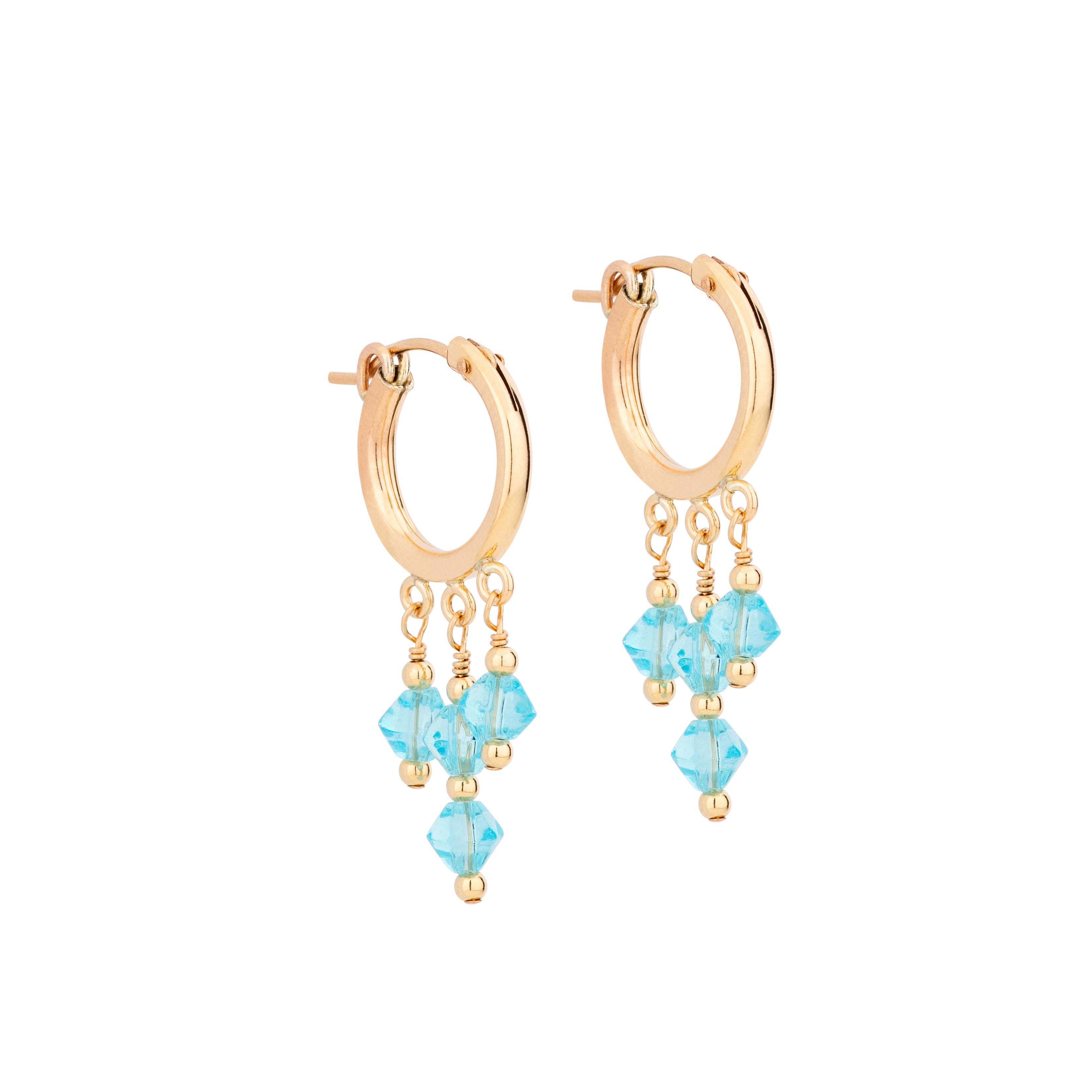 The Laguna Blue Earrings are 14k gold filled, and are also made with swarovski coloured beads. Wear as a set with the matching necklace!