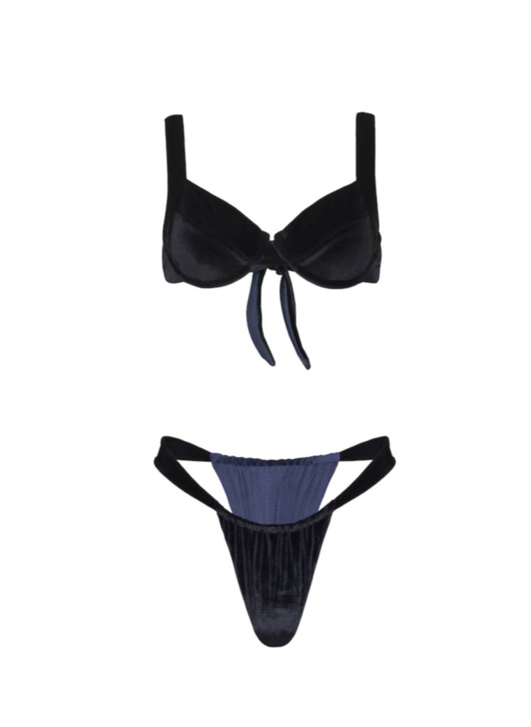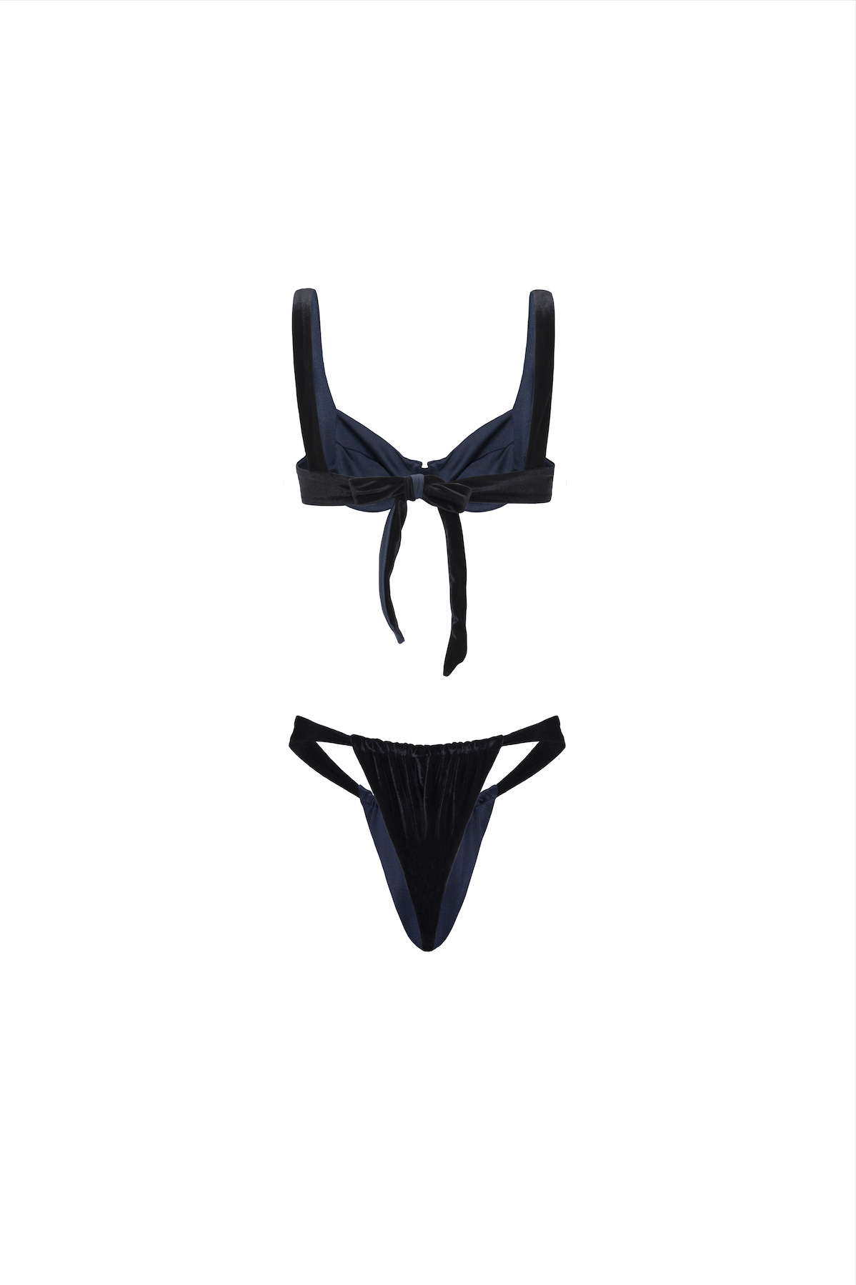 This ruched style bikini bottom is made with a luxurious velvet fabric and is reverisble with a navy blue on the inside, so you can change up the colour, depending on your mood. Wear as a set or mix and match the Blue Point bikini bottoms with any Ajay Swim designs.