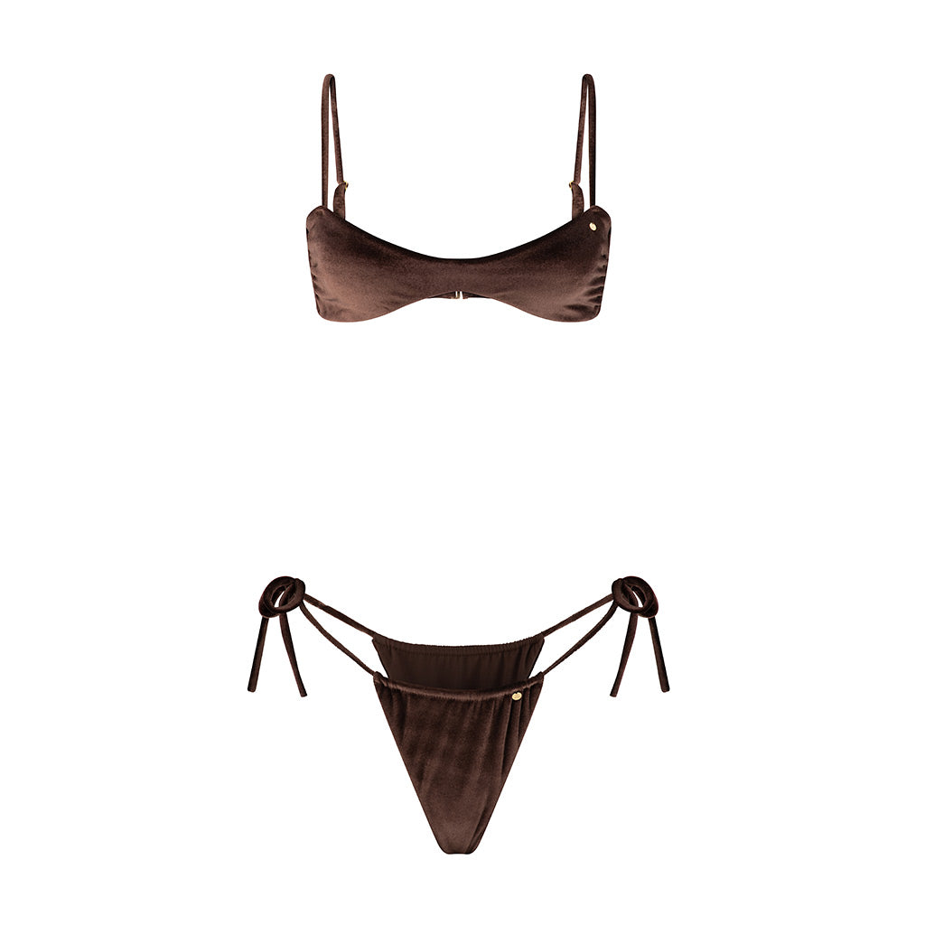 This style bikini bottom is made with a luxurious velvet material. Wear as a set or mix and match the Malibu bikini bottom with any Ajay Swim designs.