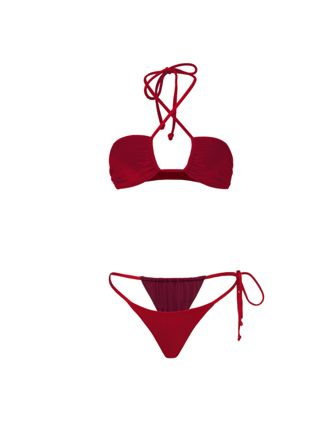 This halter style bikini top is made with a lustrous shine material and is reverisble with a magenta colour on the inside, so you can change up the colour, depending on your mood. Wear as a set or mix and match The Red Sea bikini top with any Ajay Swim designs.