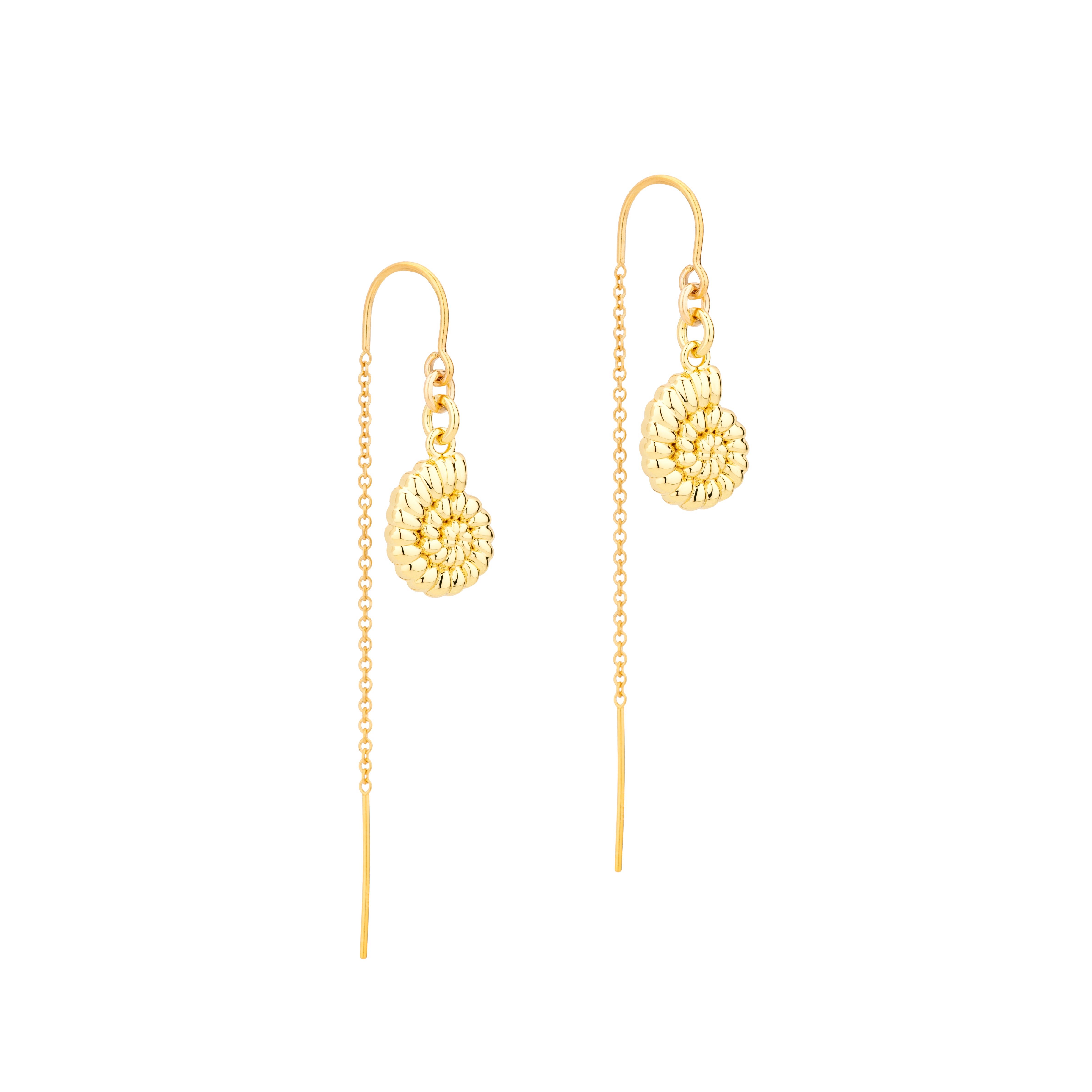 The Shell Bay Threads feature a detailed spiral pendant. It is 14k gold filled lightweight, tarnish-resistant, perfect for everyday wear.