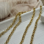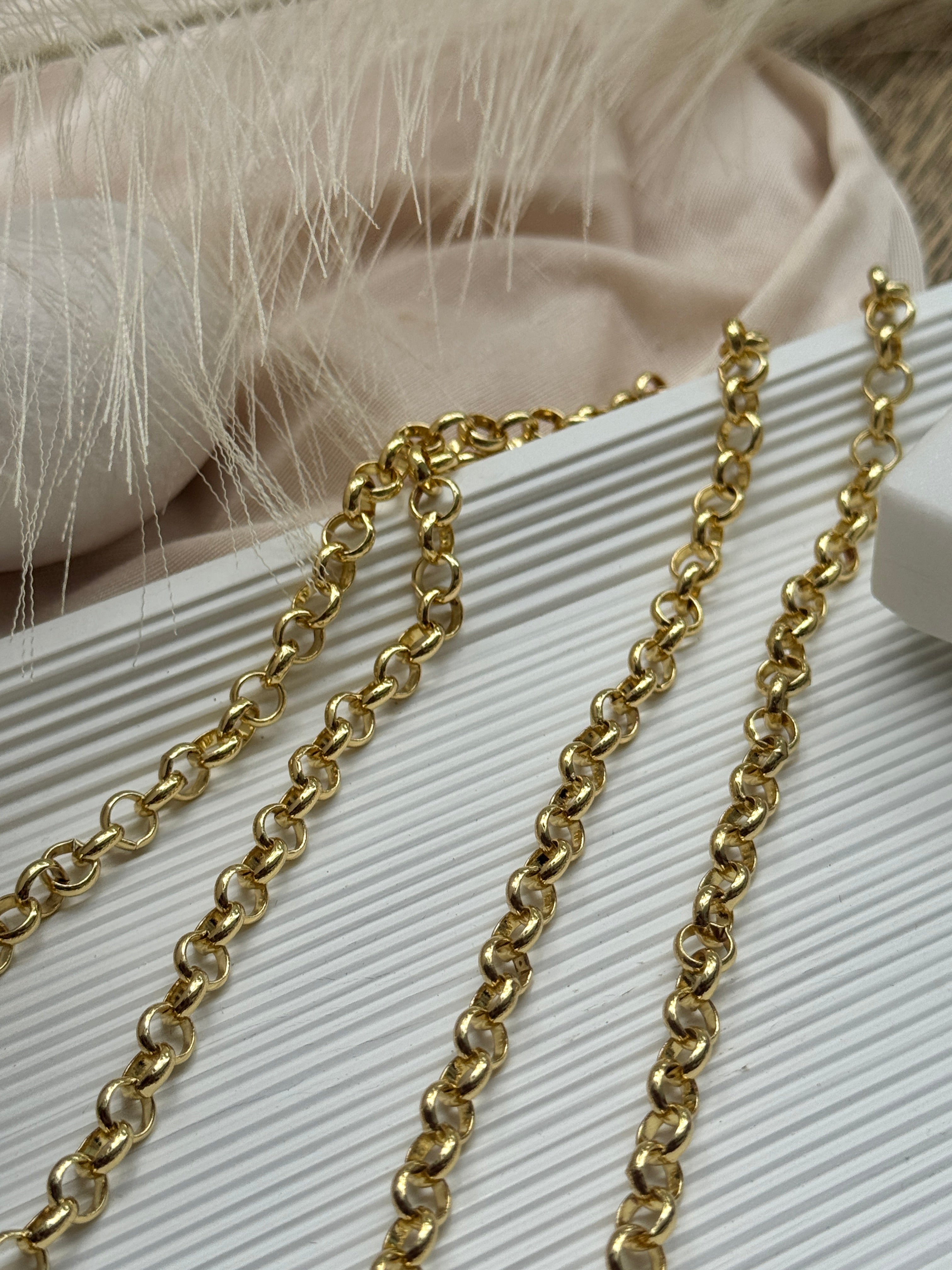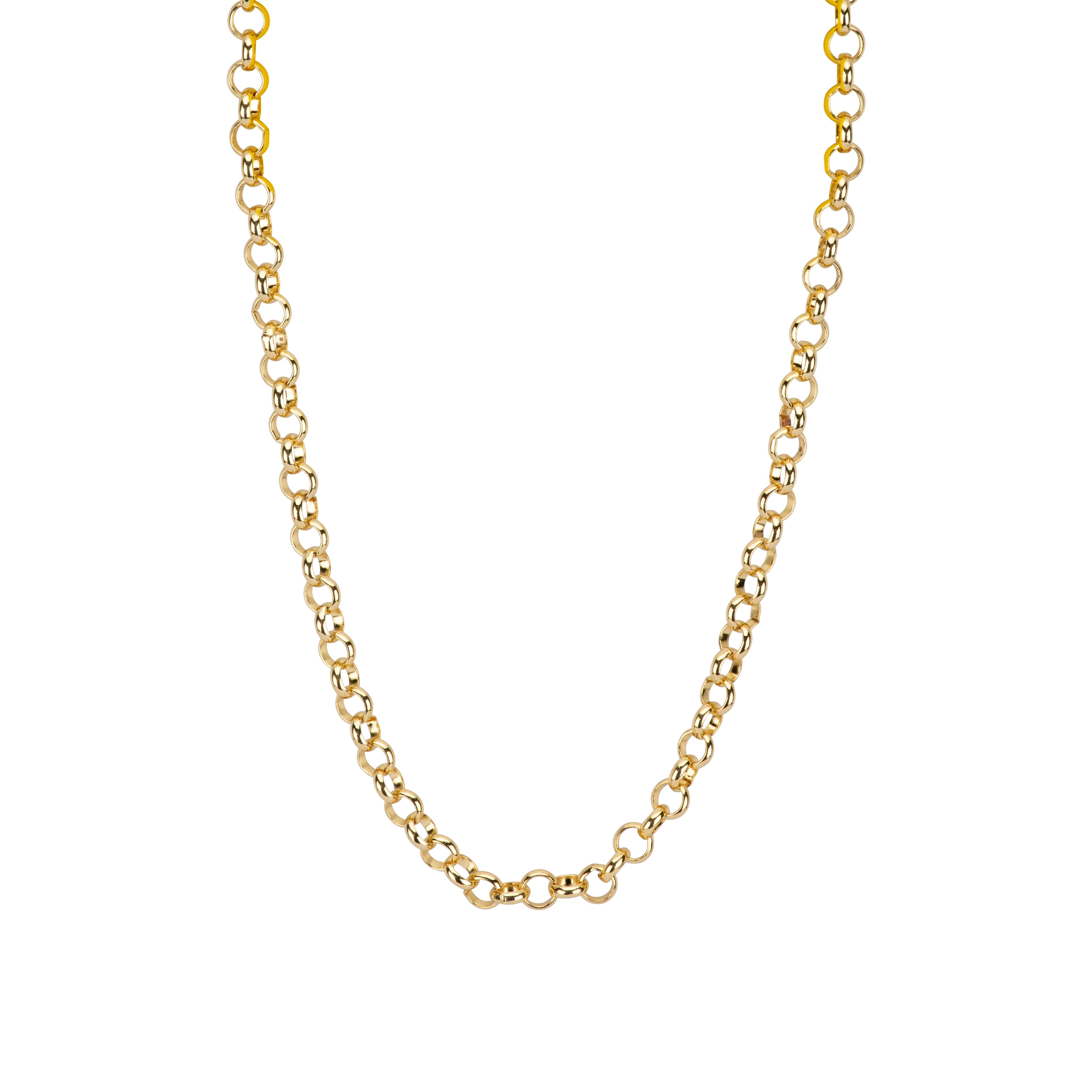 Our classic gold chain necklace is 16 inches long. It’s perfect for layering or on its own for a timeless look. To keep your chain looking its best avoid excessive contact with water, perfume, lotions and sprays