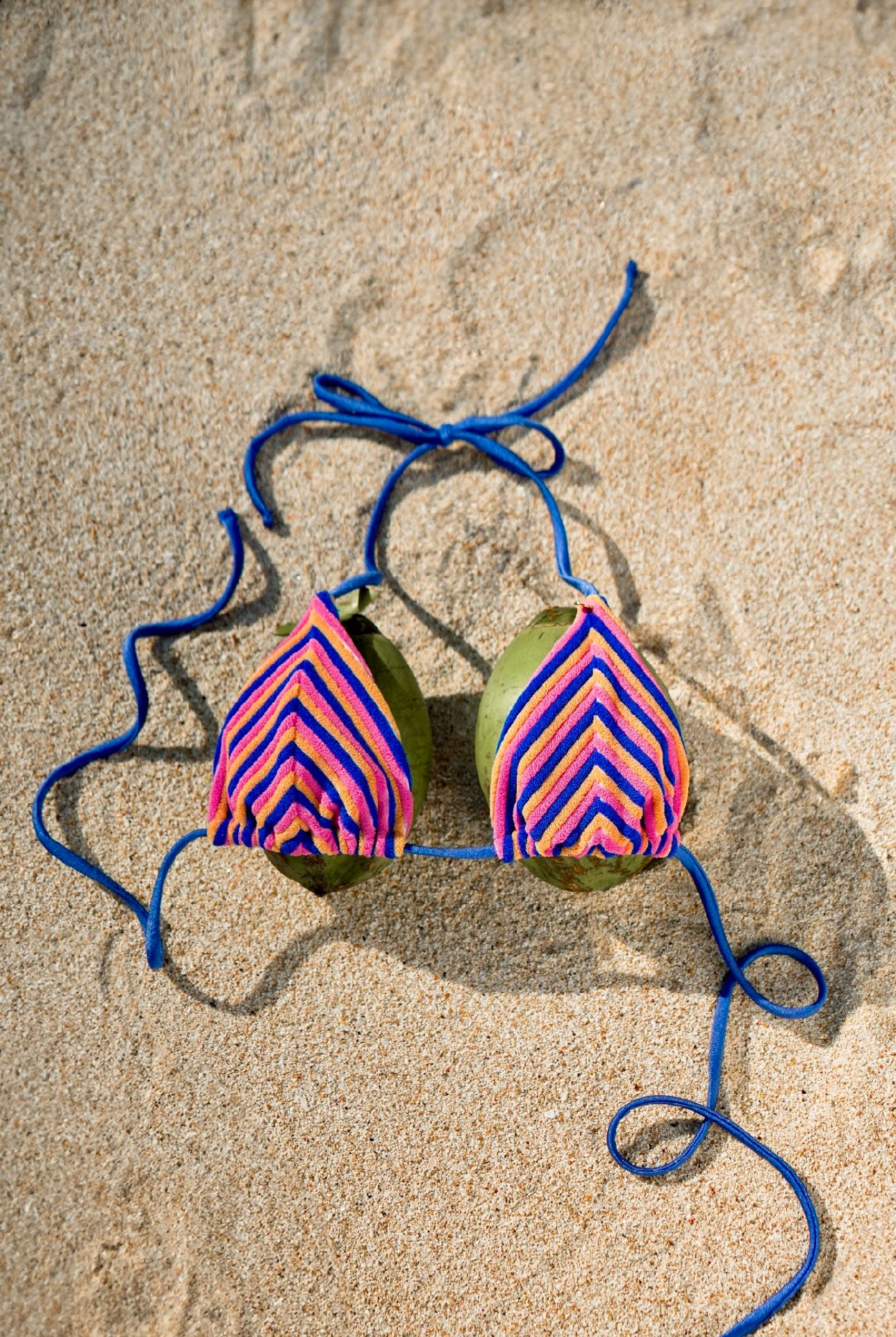 The Sunset Stripe bikini top by Ajay swim is a triangle bikini with an adjustable thin straps.