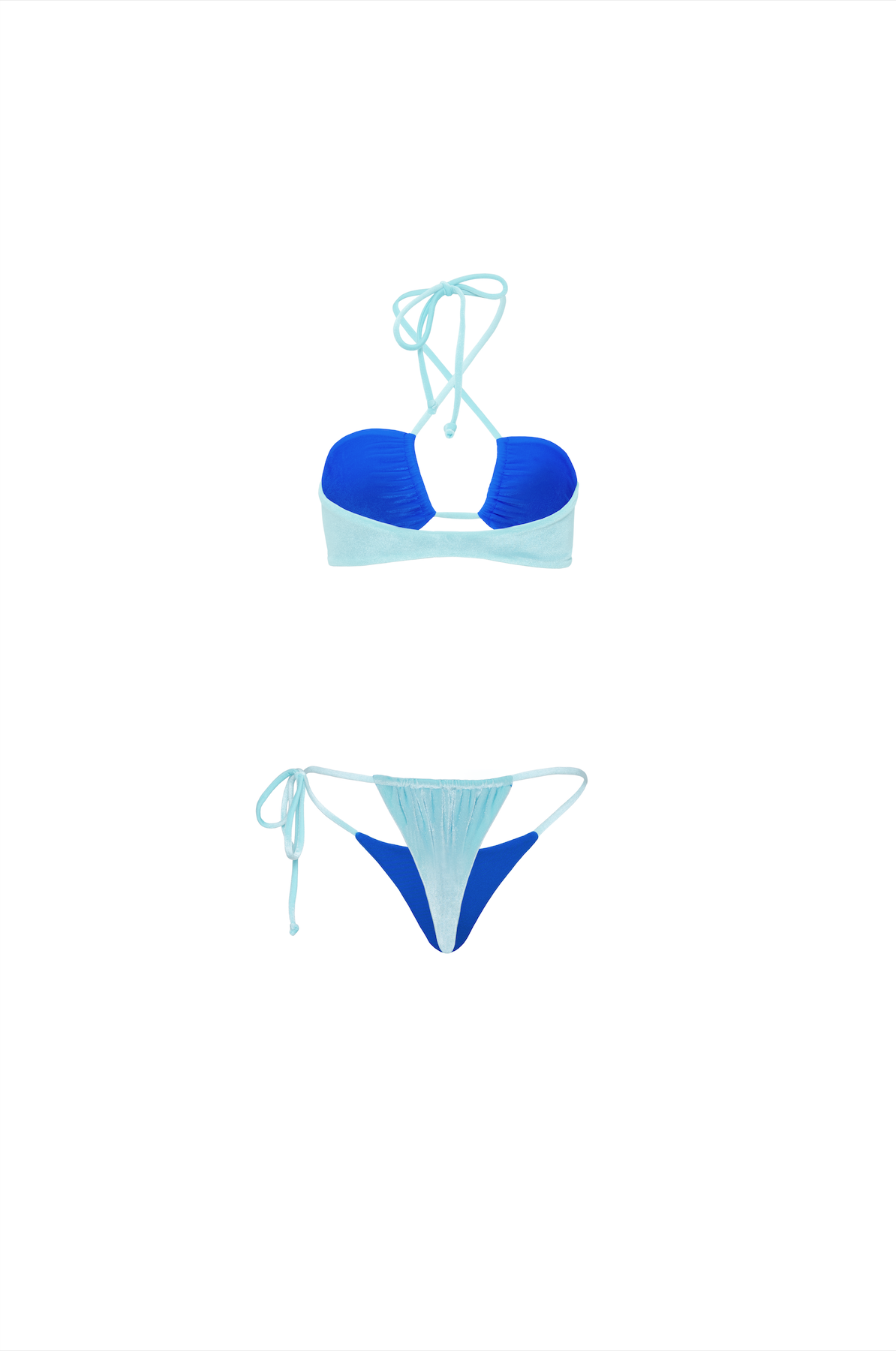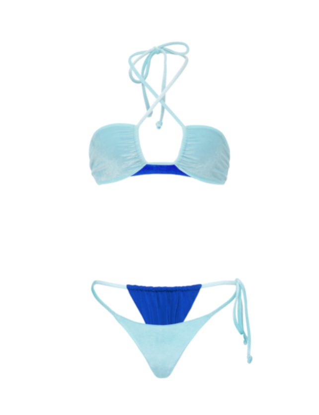This style bikini bottom is made with a luxurious velvet material, and is reversible with a royal blue on the inside, so you can change up the colour, depending on your mood. Wear as a set or mix and match the Day Dream bikini bottom with any Ajay Swim designs.