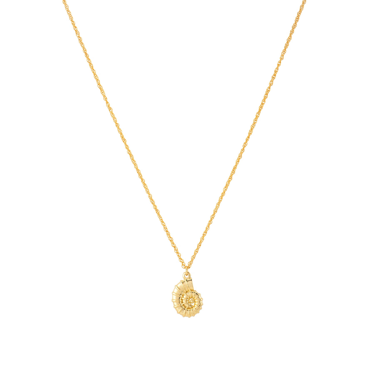 The Shell Bay Necklace features a detailed spiral pendant on a delicate 16 inch 14k gold-filled chain. Lightweight, tarnish-resistant, and perfect for everyday wear it's a timeless touch of coastal charm.